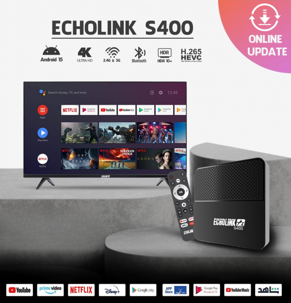 La Box Android Echolink S400 est équipée du dernier système Android 15.0 pour une navigation rapide et intuitive. Compatible avec le Wifi 2.4/5 GHz, elle vous garantit une connexion fluide pour profiter de YouTube et de nombreuses applications. Transformez votre téléviseur en un espace de divertissement moderne et sans limites.