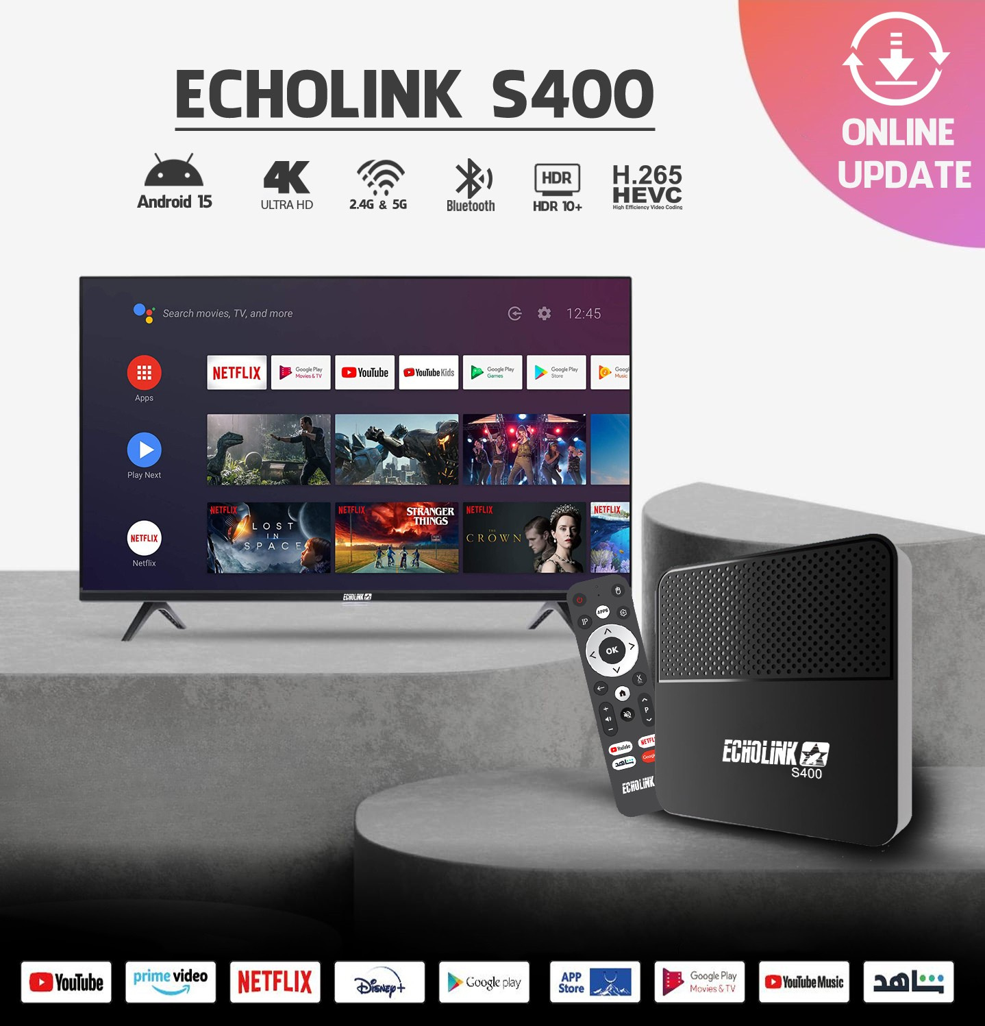 Découvrez la Box Android Echolink S400, un concentré de technologie conçu pour transformer votre téléviseur en véritable centre de divertissement. Fonctionnant sous Android 15.0, elle vous offre une interface moderne, rapide et intuitive, idéale pour profiter de vos contenus préférés en toute simplicité.